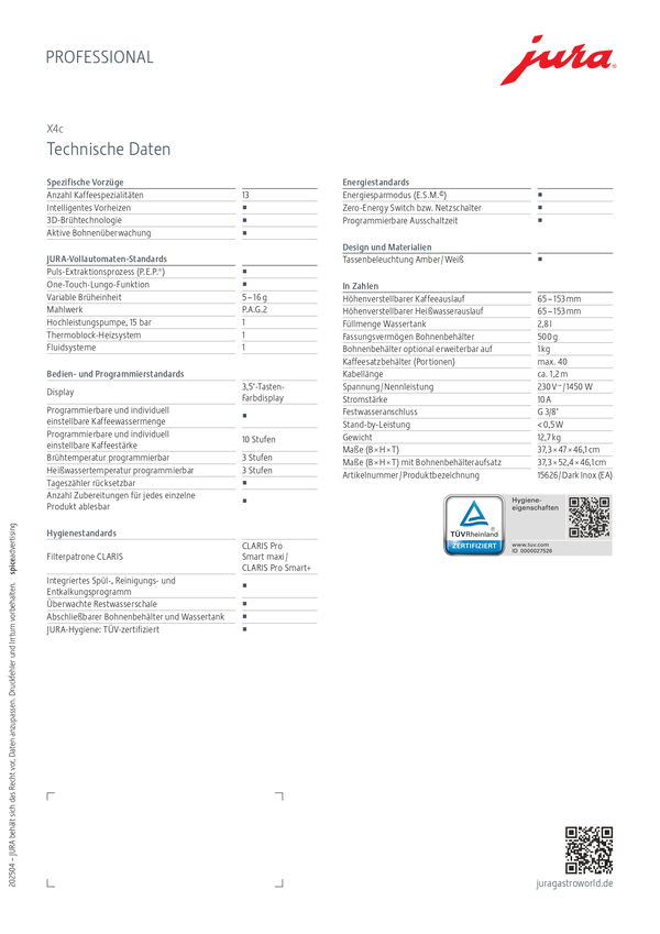 Kaffeevollautomat Jura X4c mit Festwasseranschluß