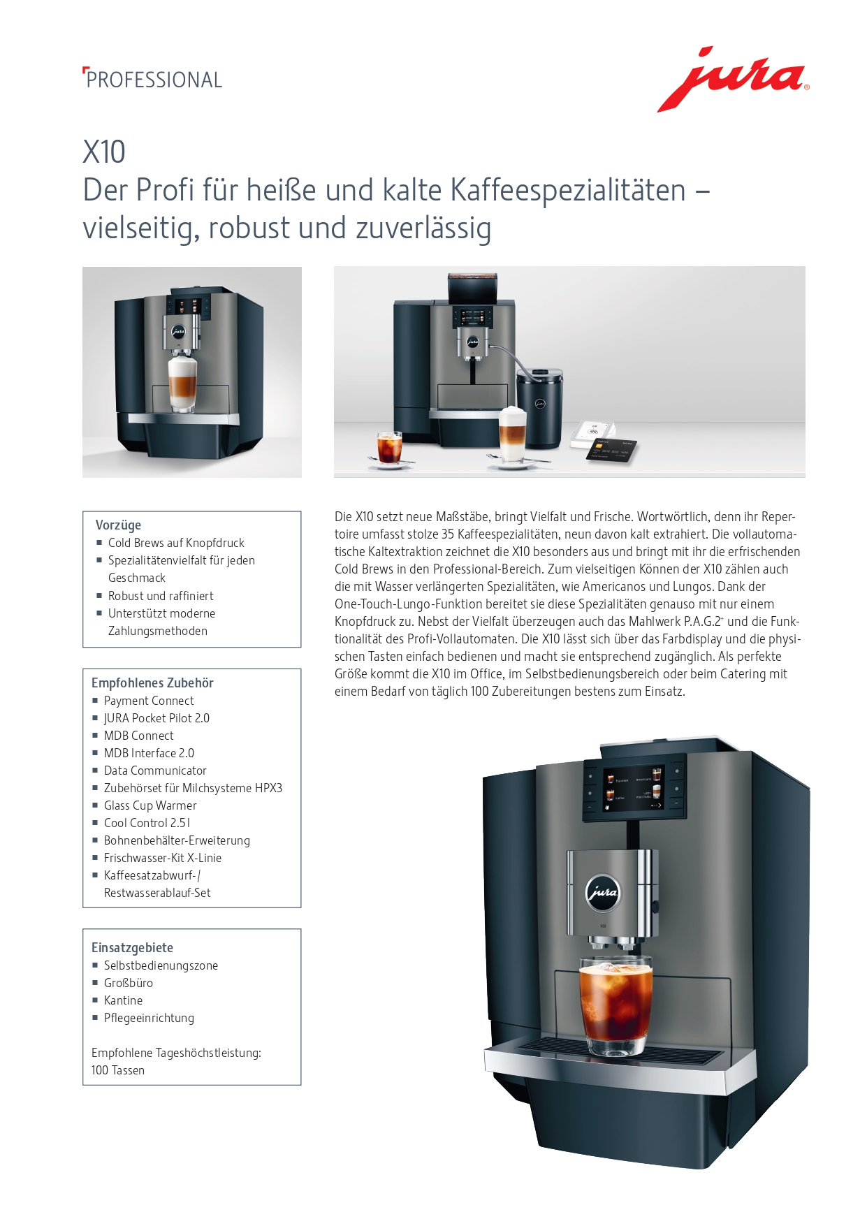 Kaffeevollautomat Jura X10 mit 5 Liter Wassertank