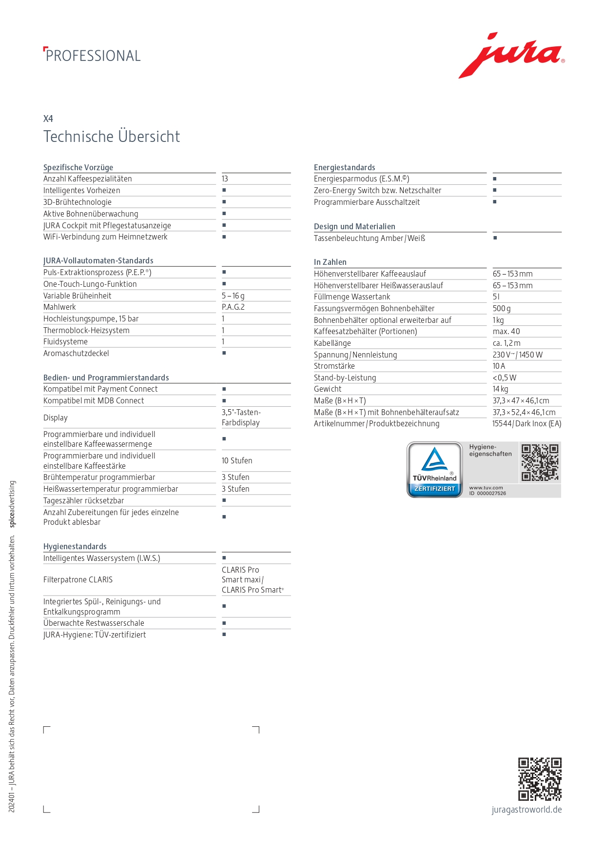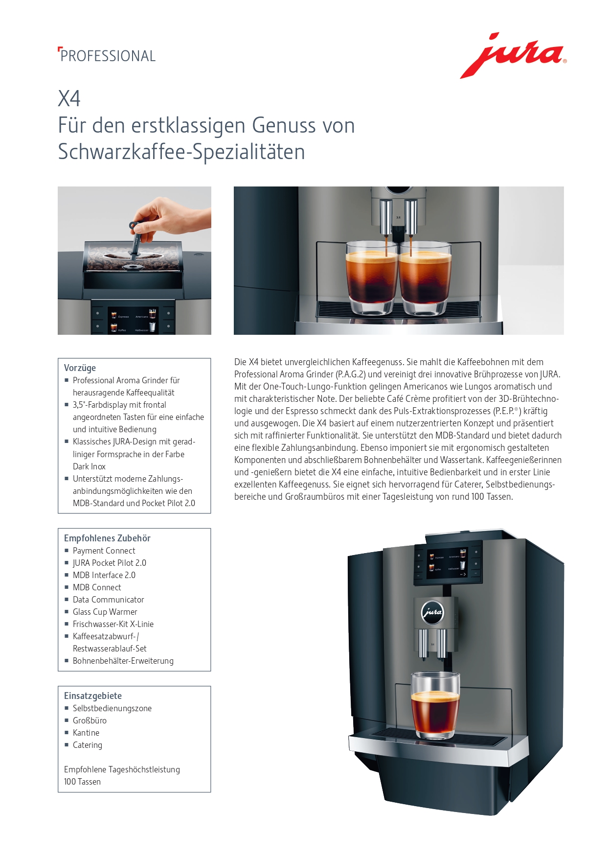 Kaffeevollautomat Jura X4 mit 5 Liter Wassertank